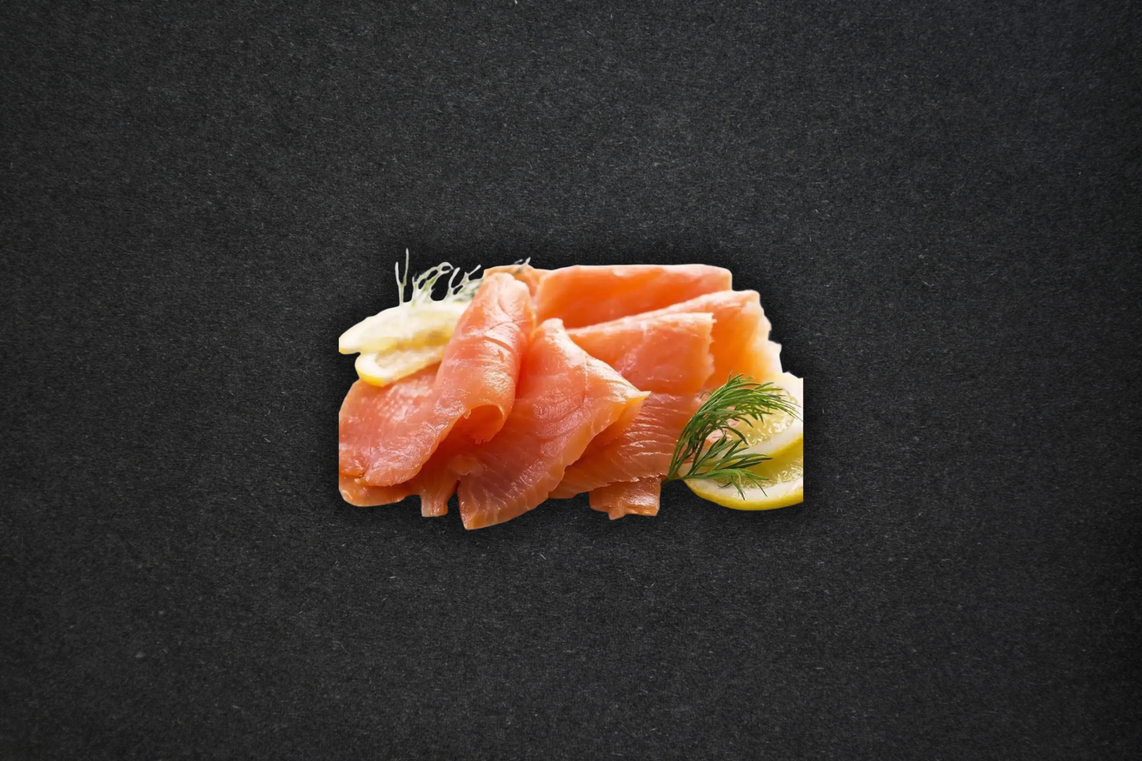 Salmo trutta – Ørret i skiver som er røkt på tradisjonelt vis, som kombinerer tradisjon og smak. Nydelig ved frokostbordet, eller i eksempelvis en tapas. Vakumpakket på pappbrett. Fryst. Opprinnelse: Oppdrett - Produsert i Ålesund.